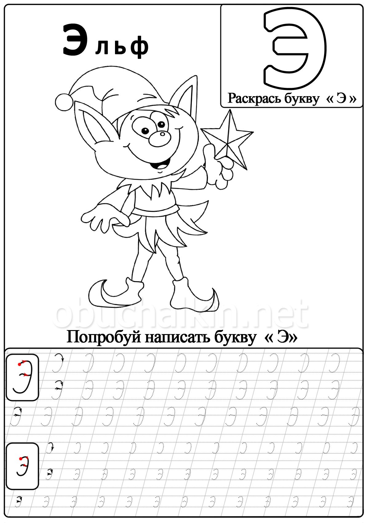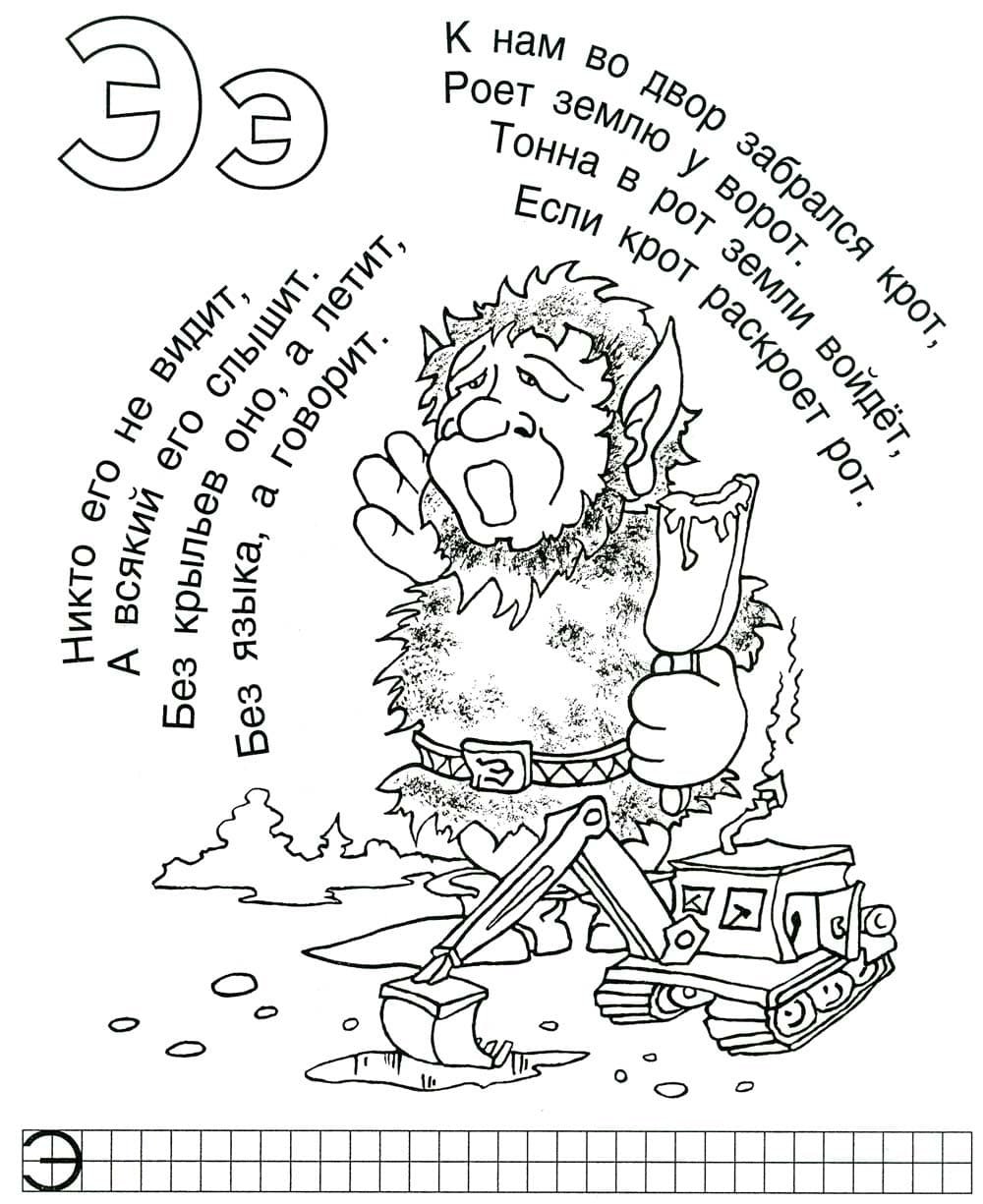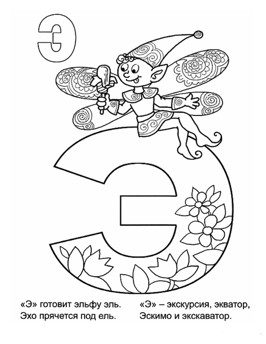 Раскраска буква э для дошкольников