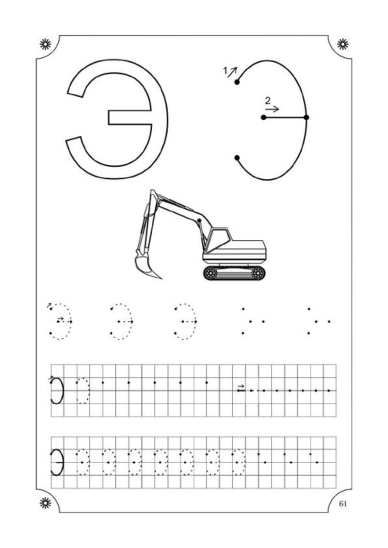Письмо печатной буквы э для дошкольников