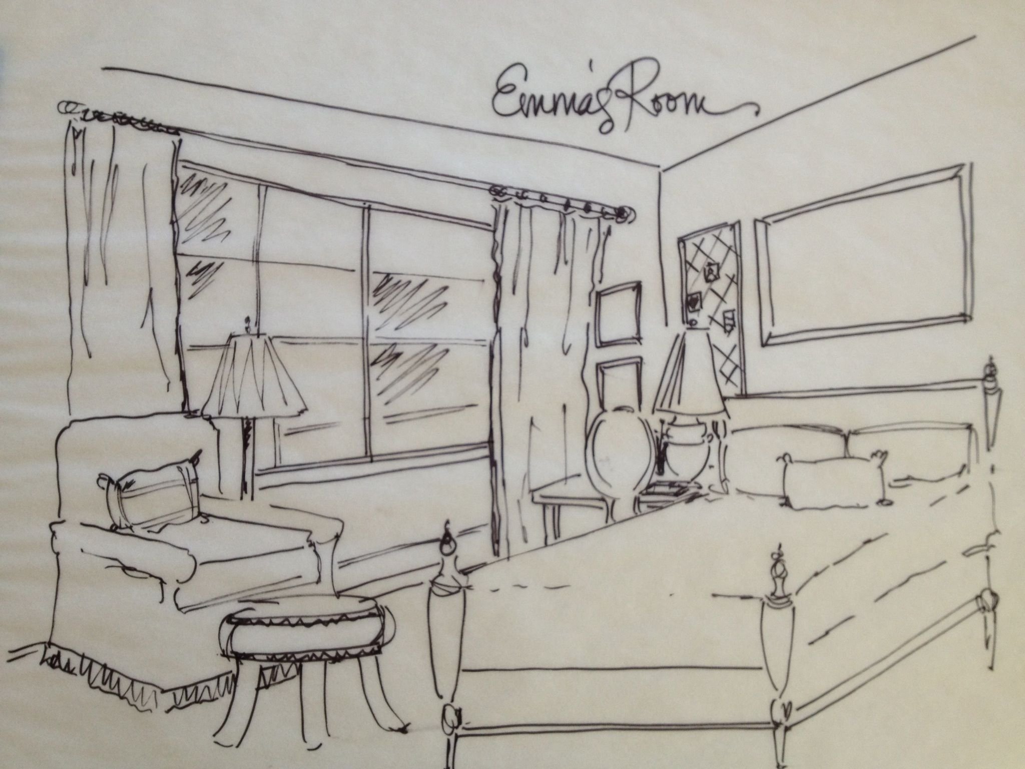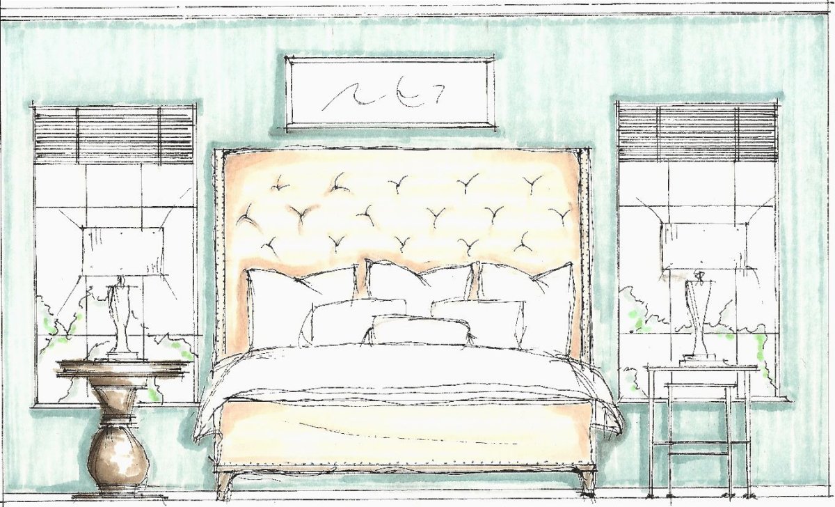 Эскиз спальни карандашом