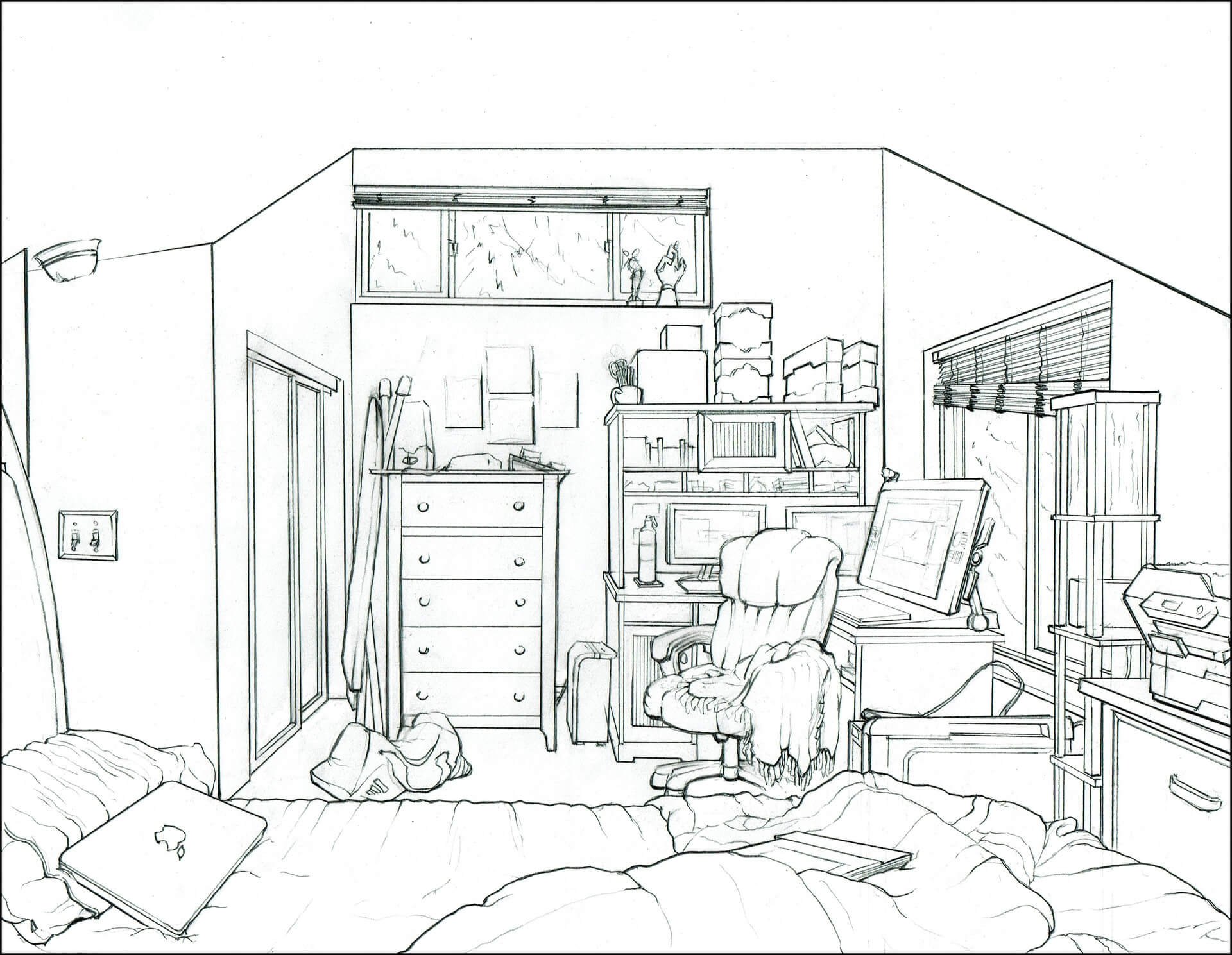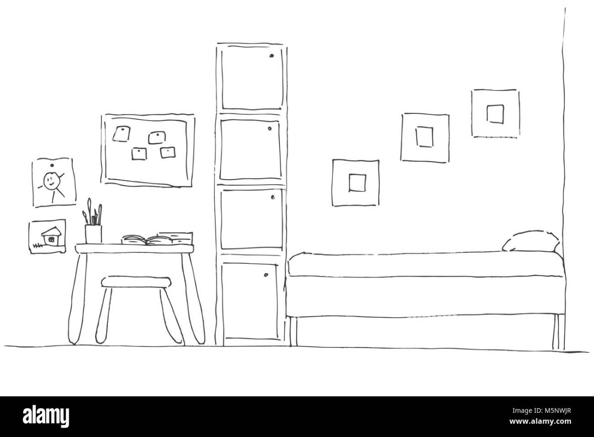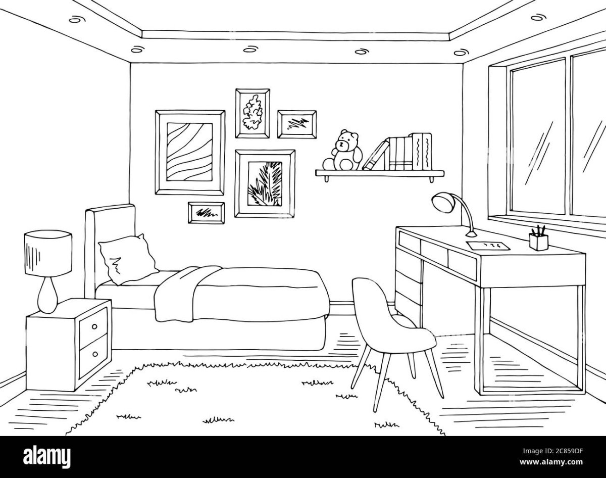 Комната карандашом для срисовки