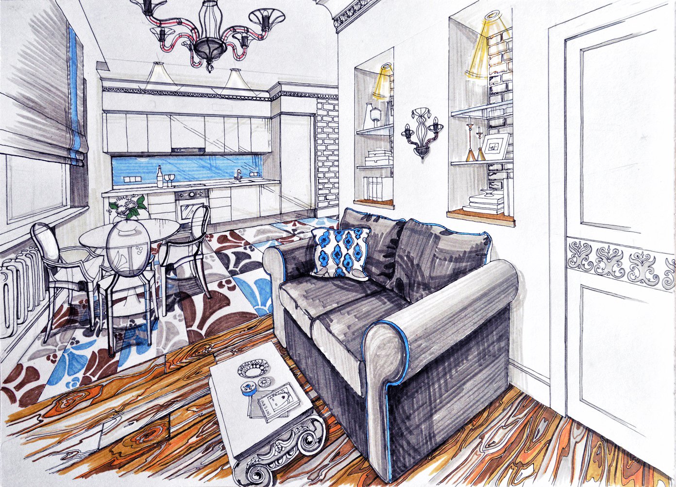Интерьер квартиры студии зарисовка