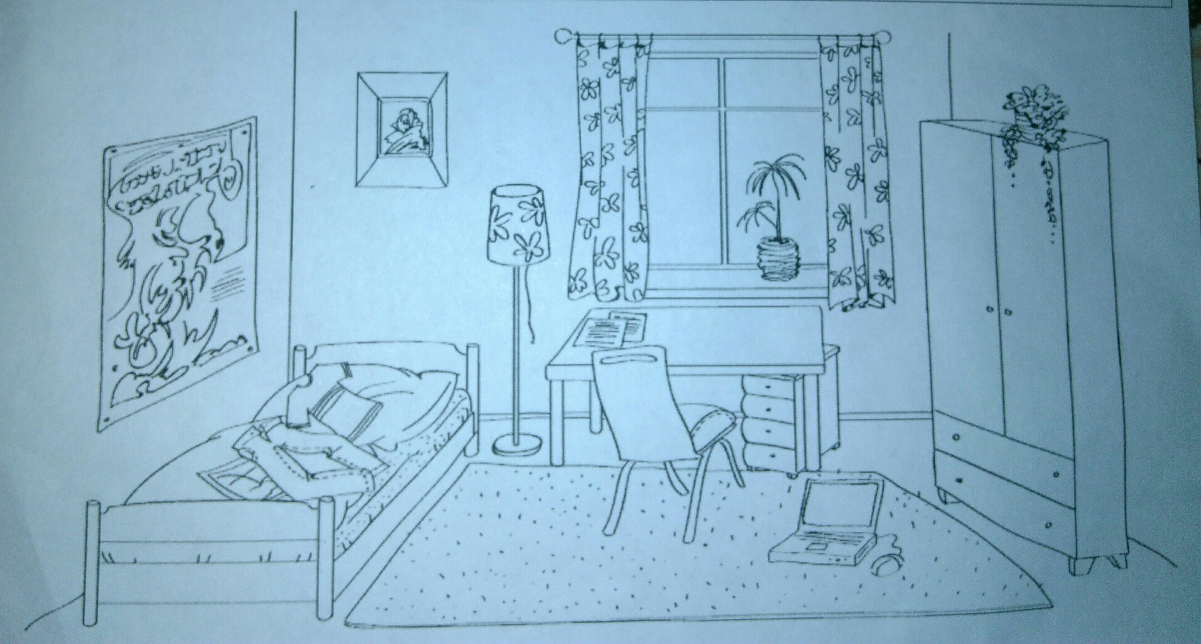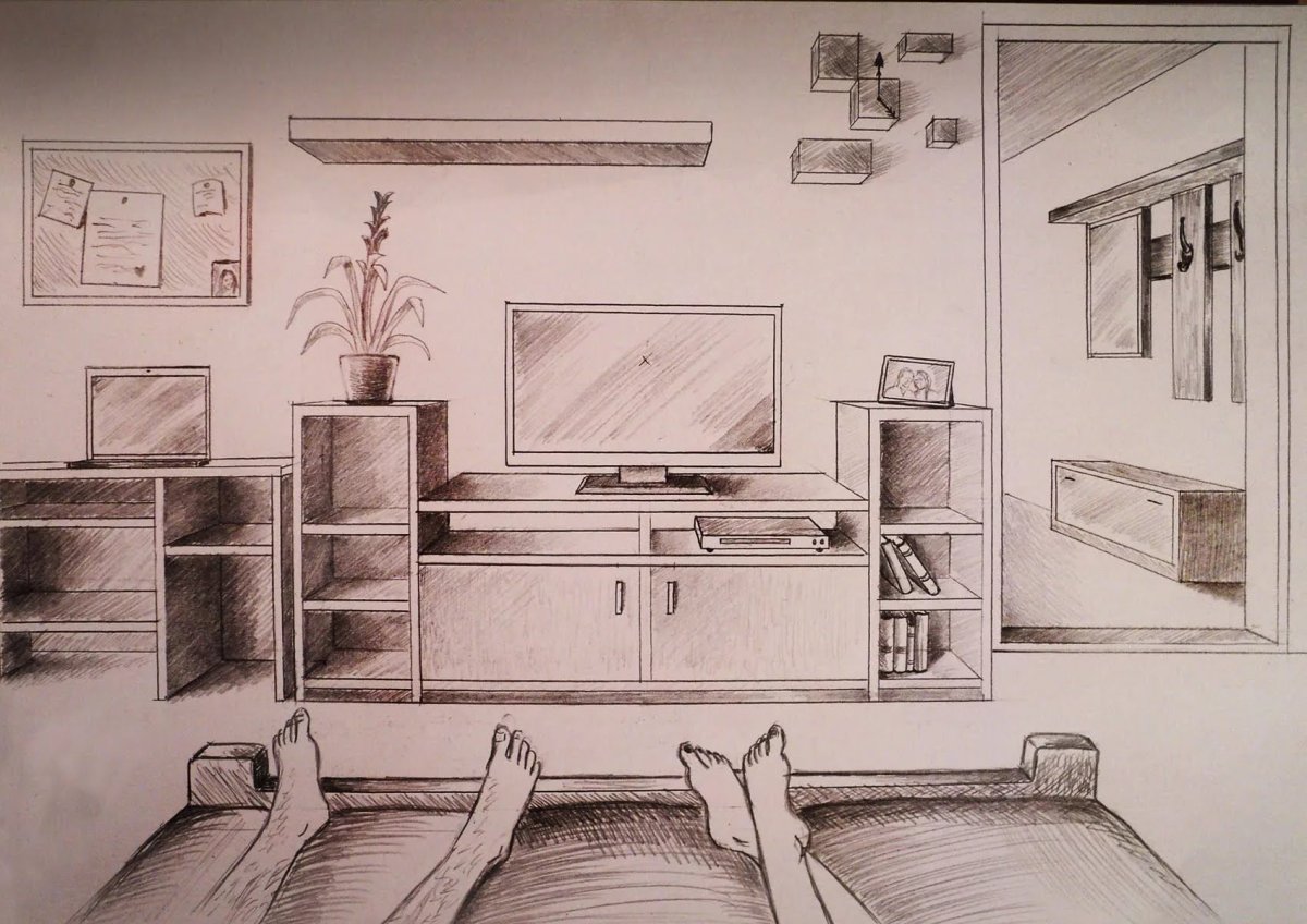 Рисунок комнаты карандашом для детей