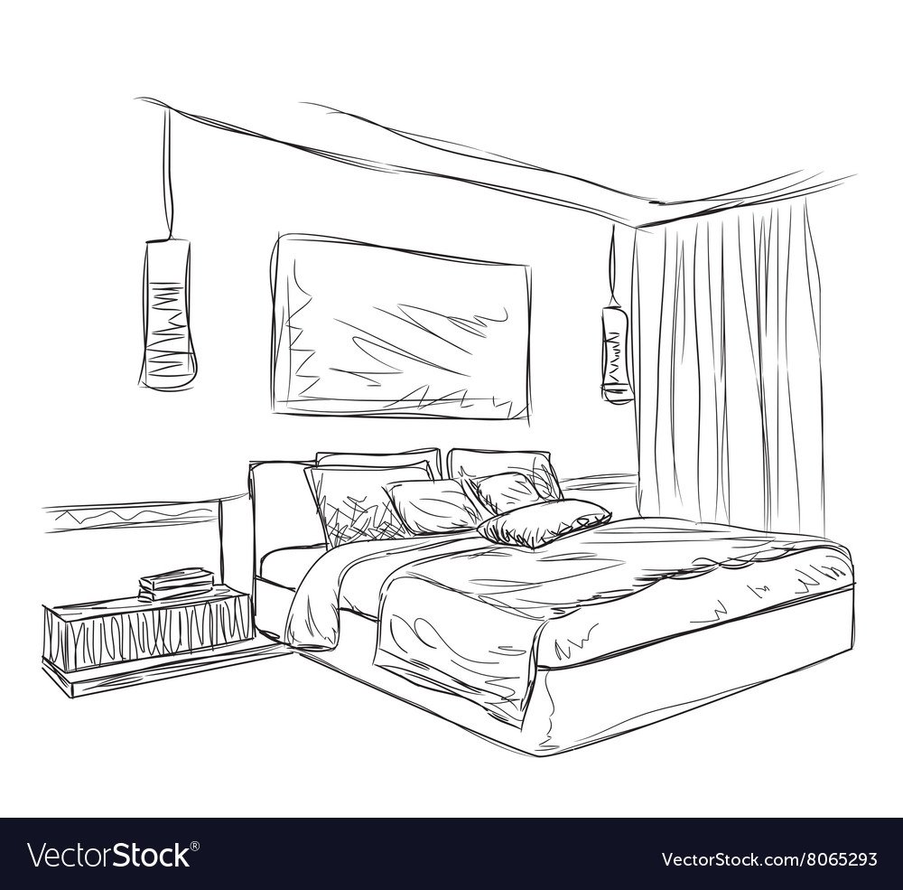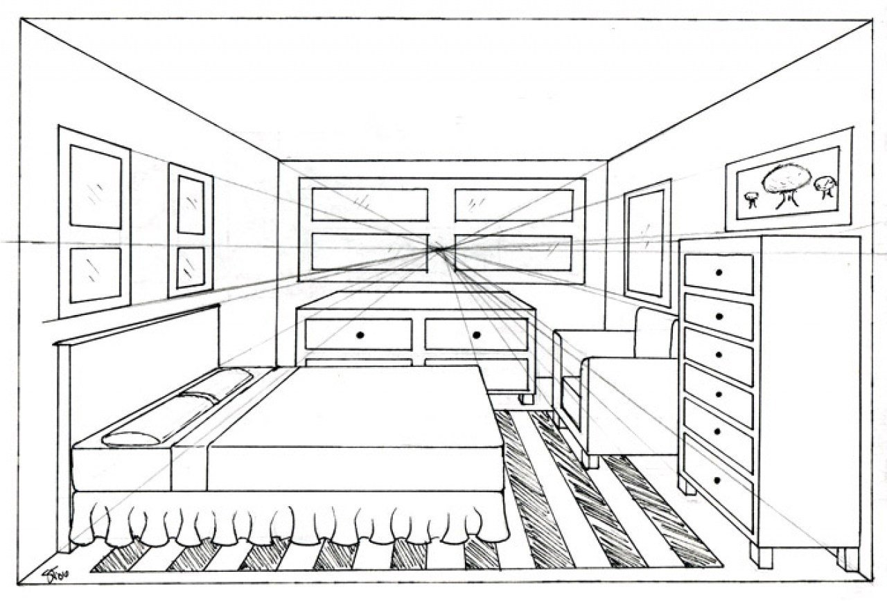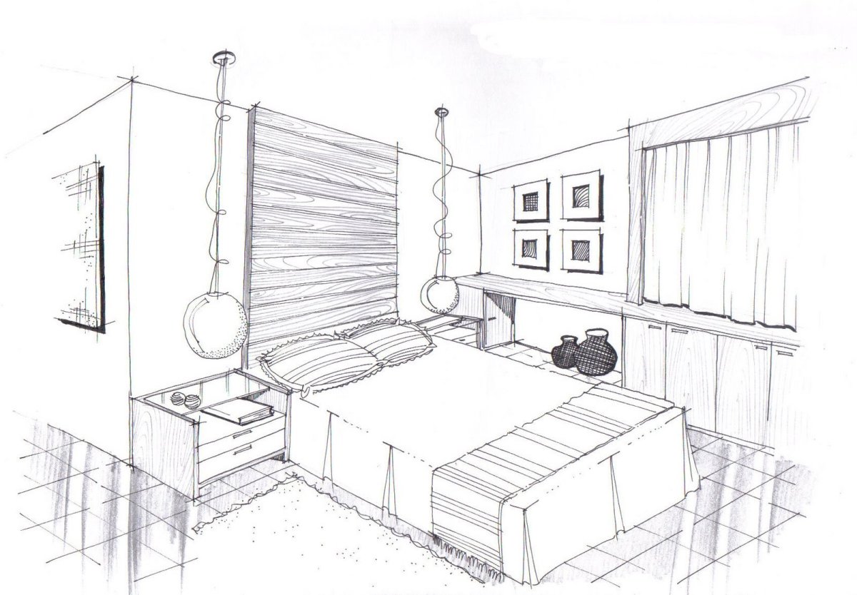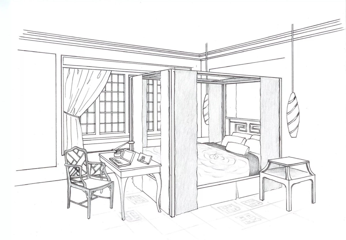 Рисунок спальни карандашом