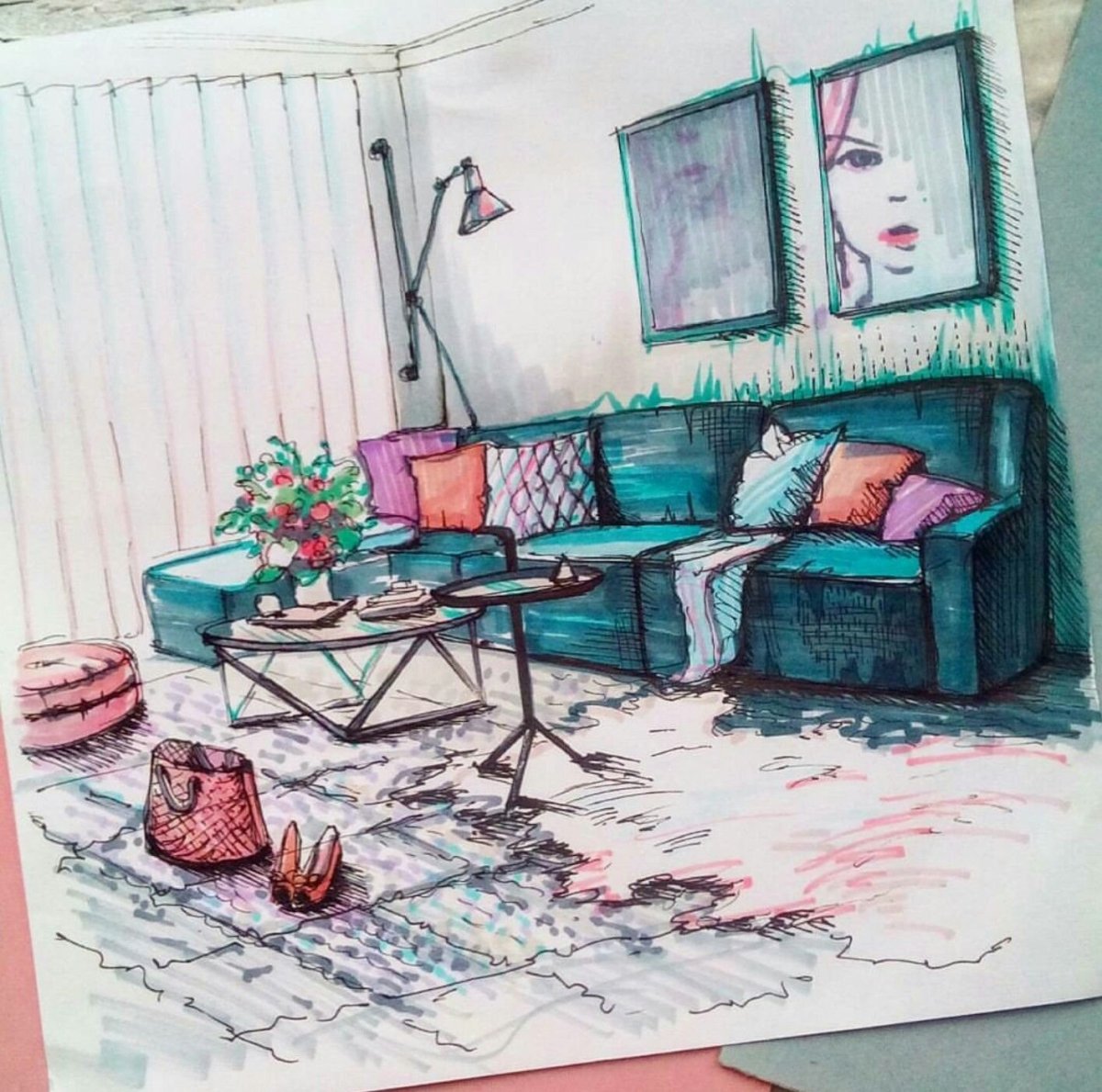 Интерьер цветными карандашами