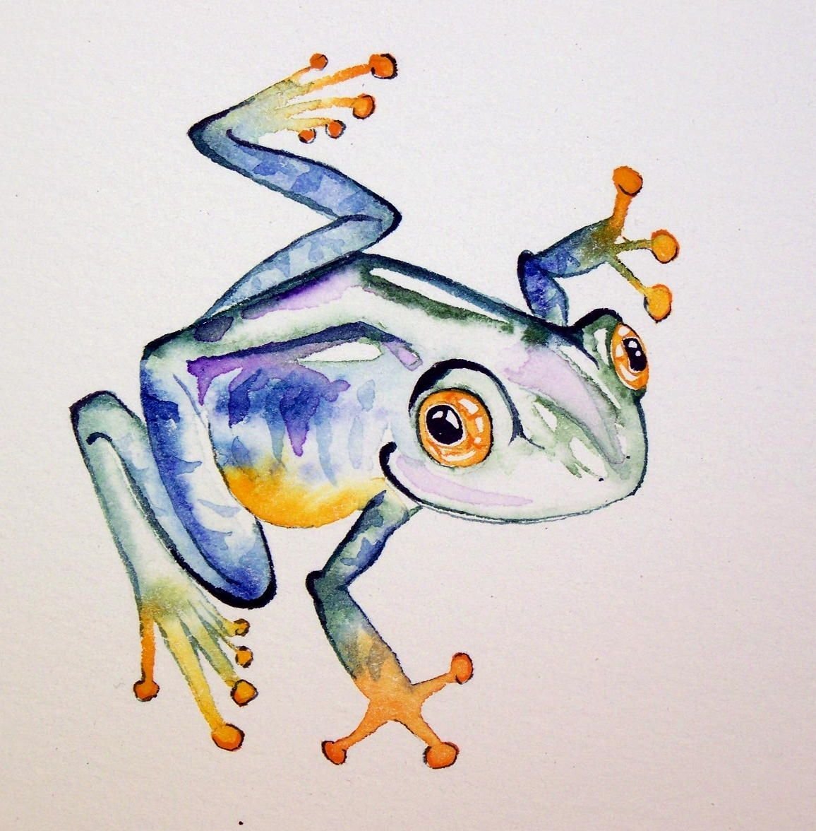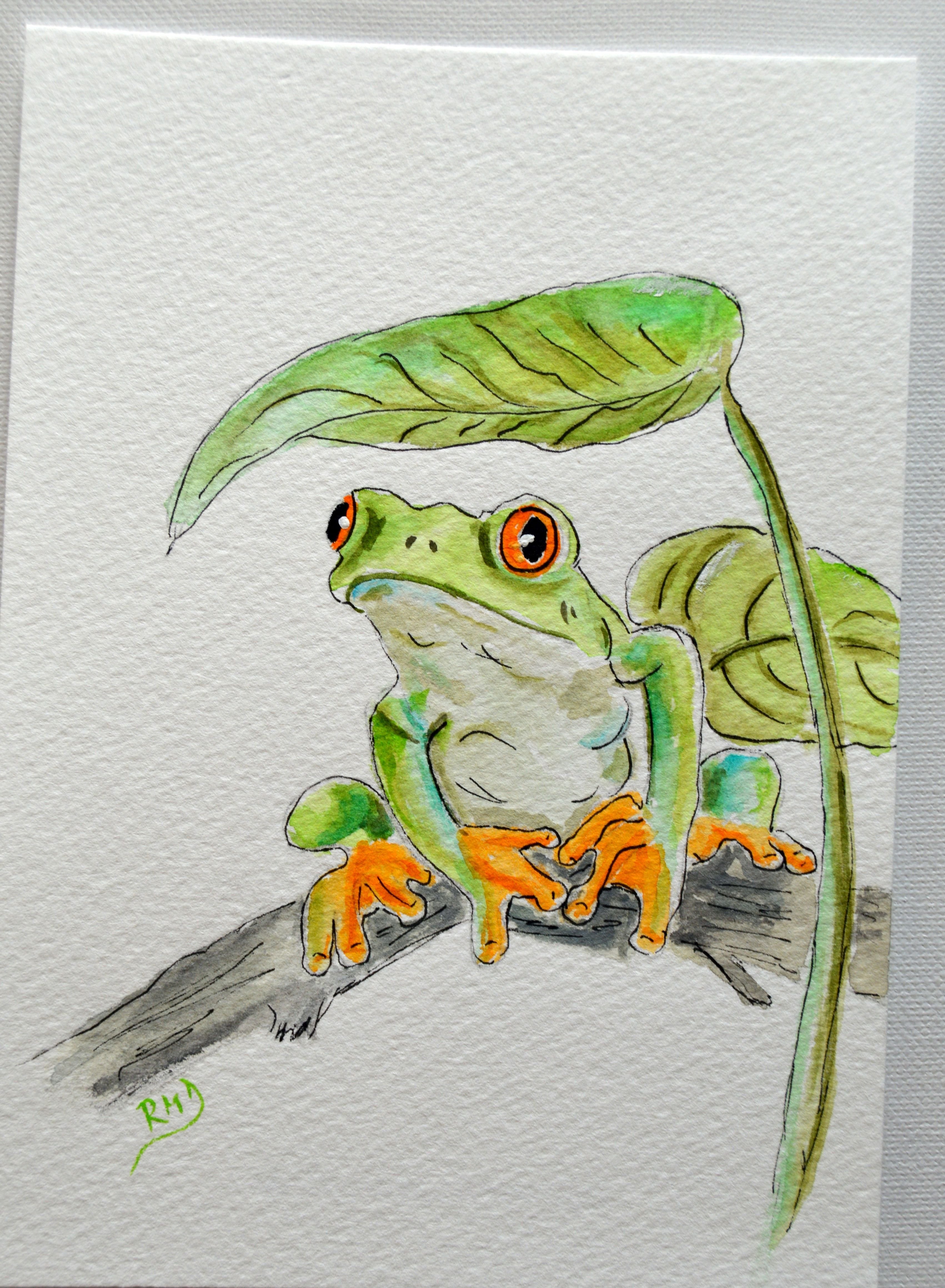 Лягушка рисунок акварелью