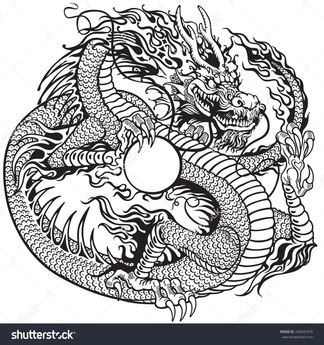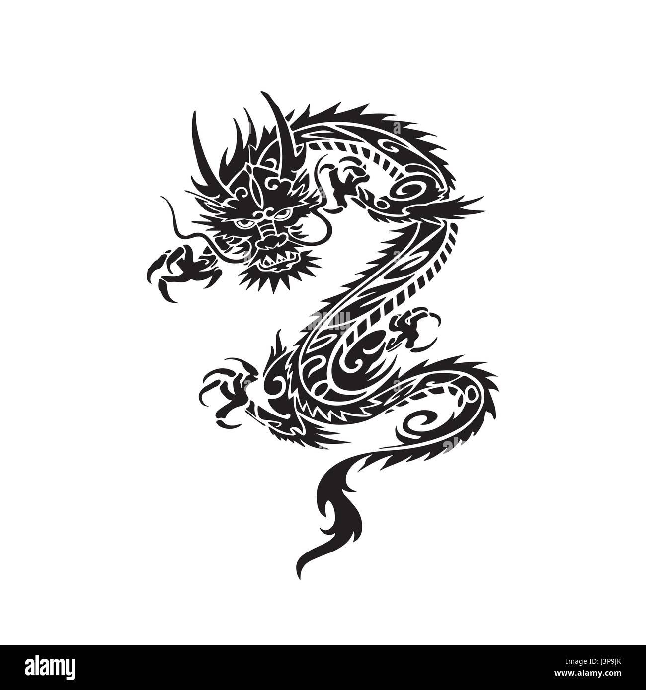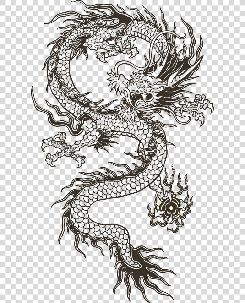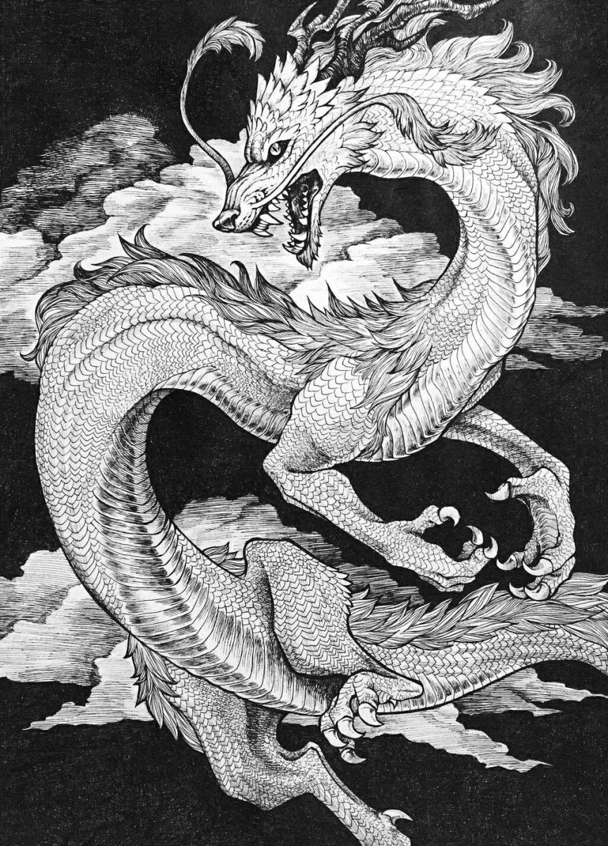 Китайский дракон черно белый