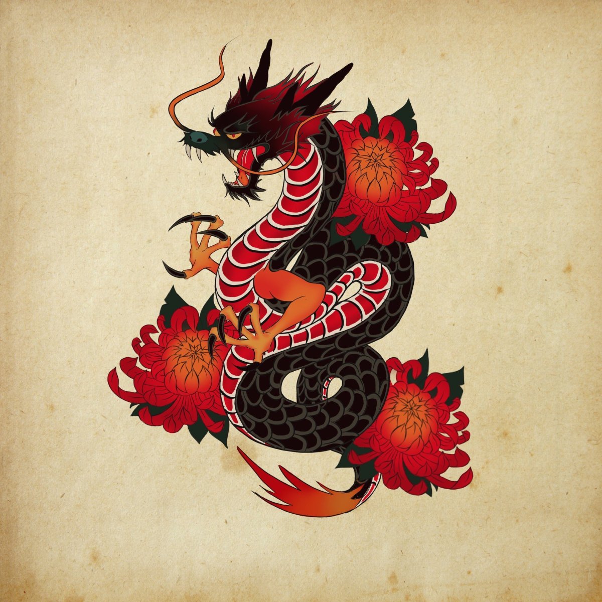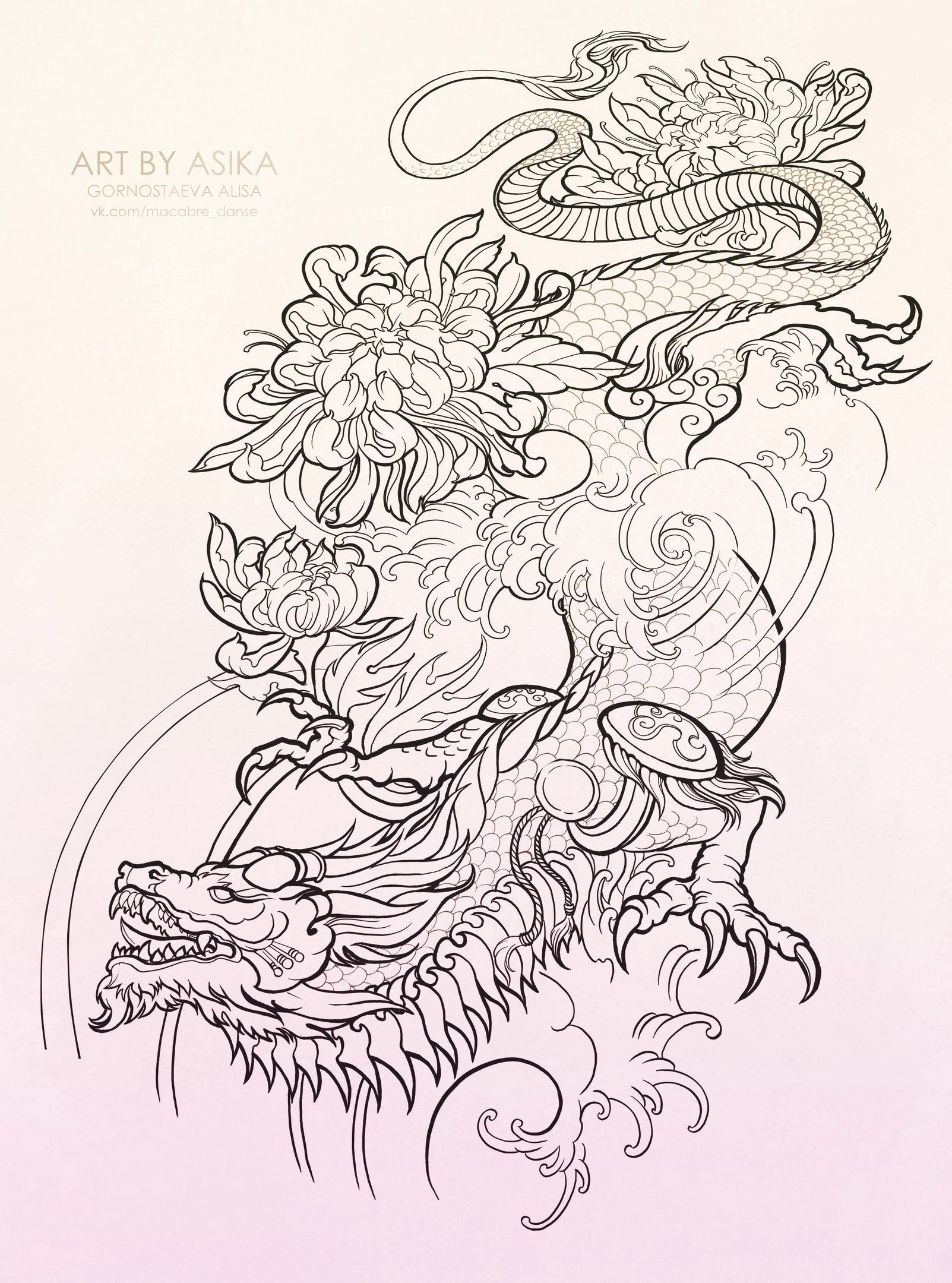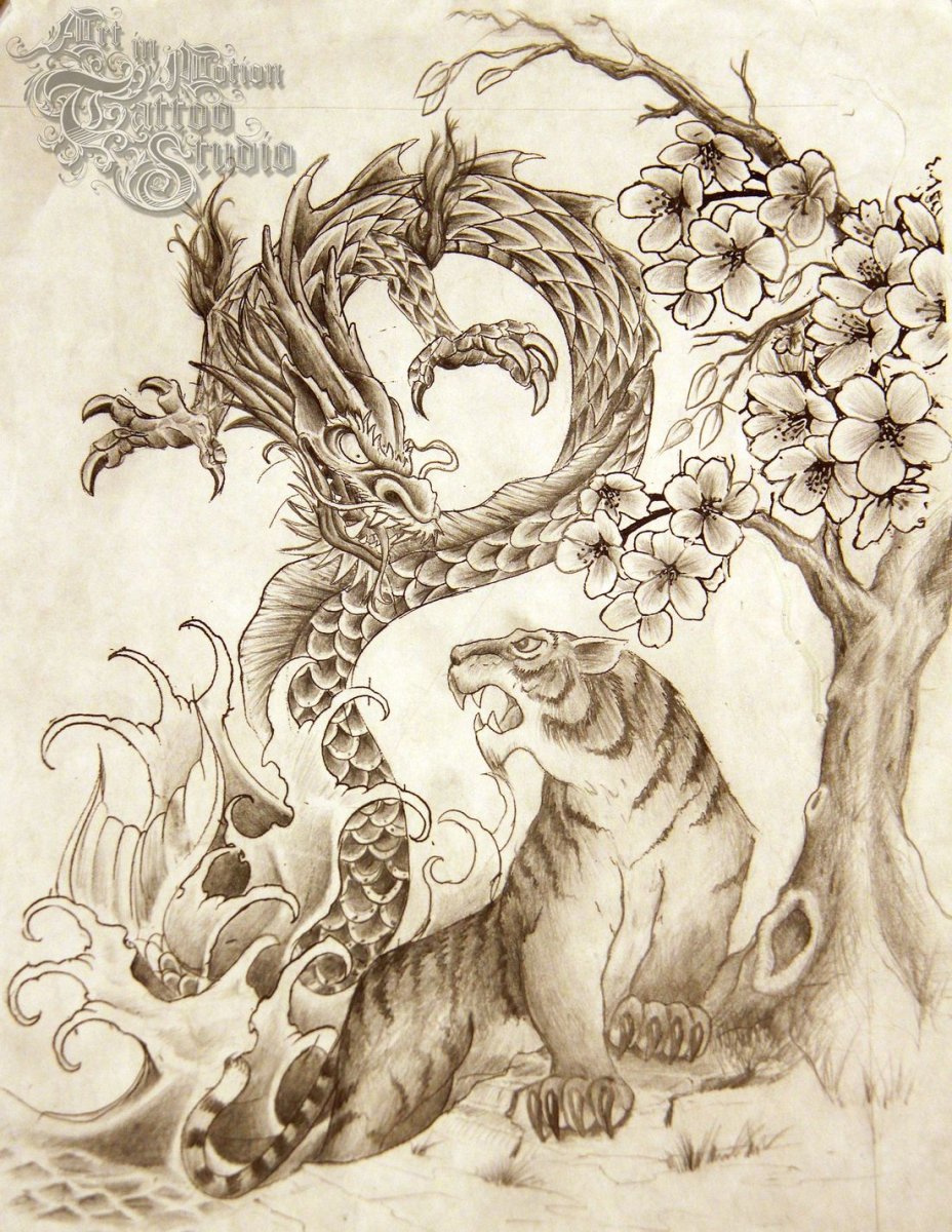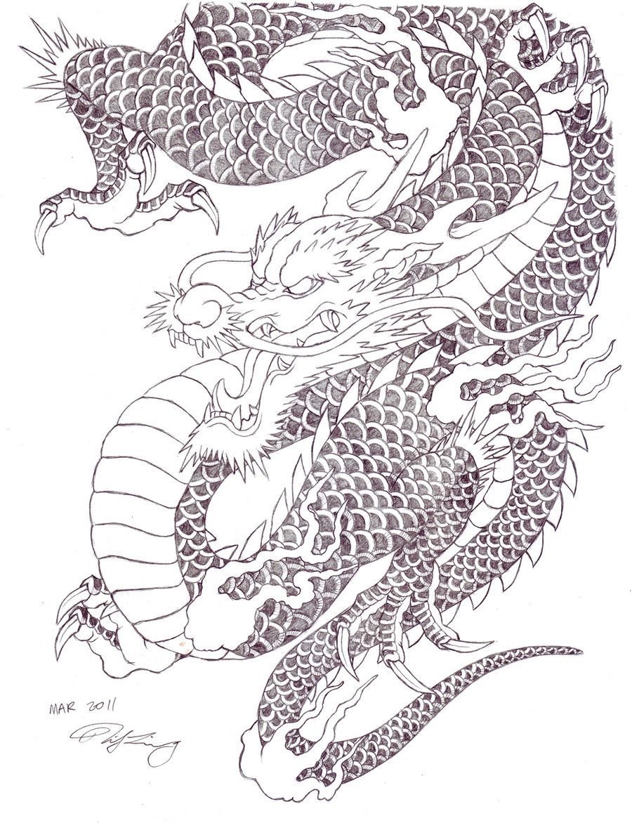 Китайский дракон тату эскизы