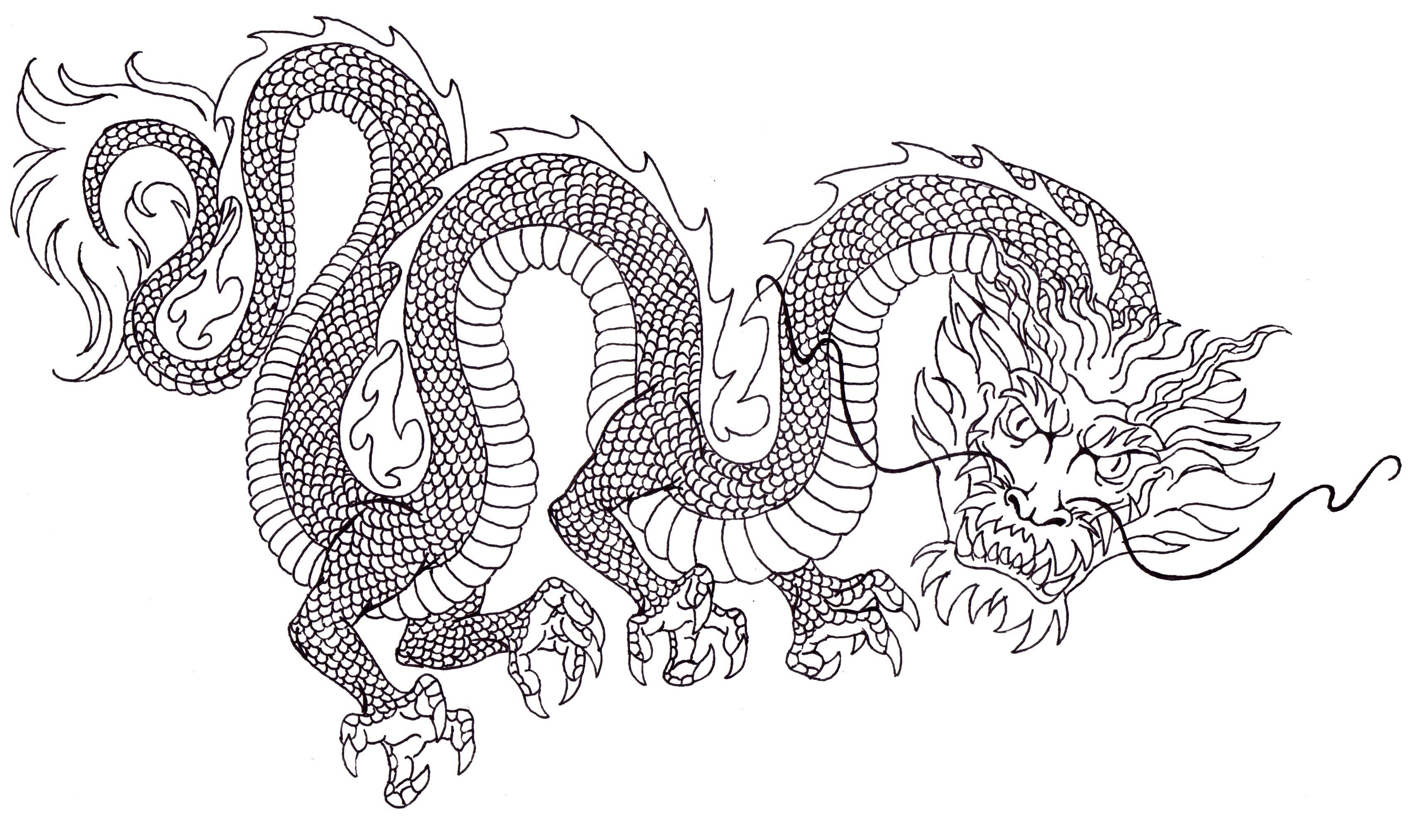 Эскиз дракона в японском стиле