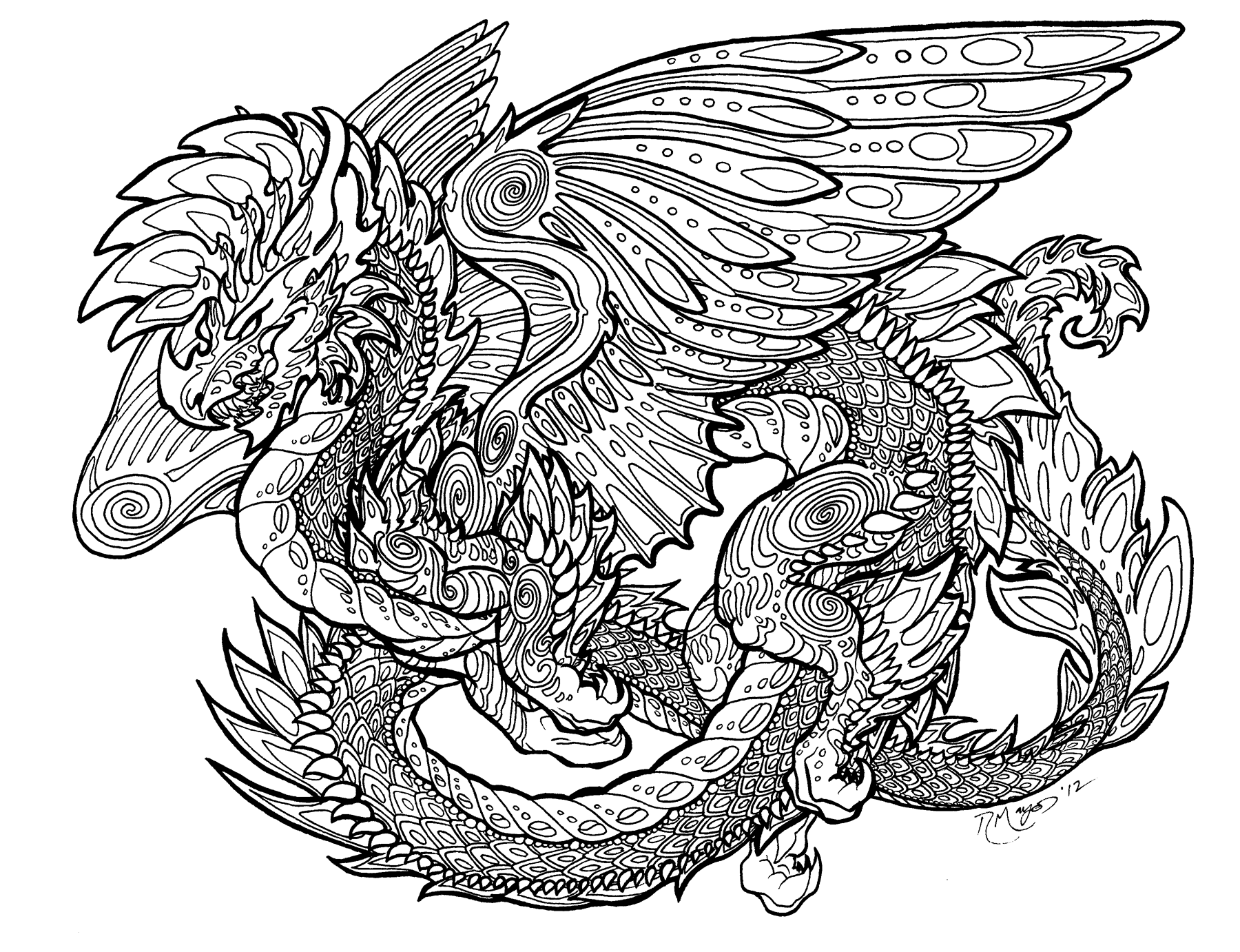 Раскраска антистресс дракон